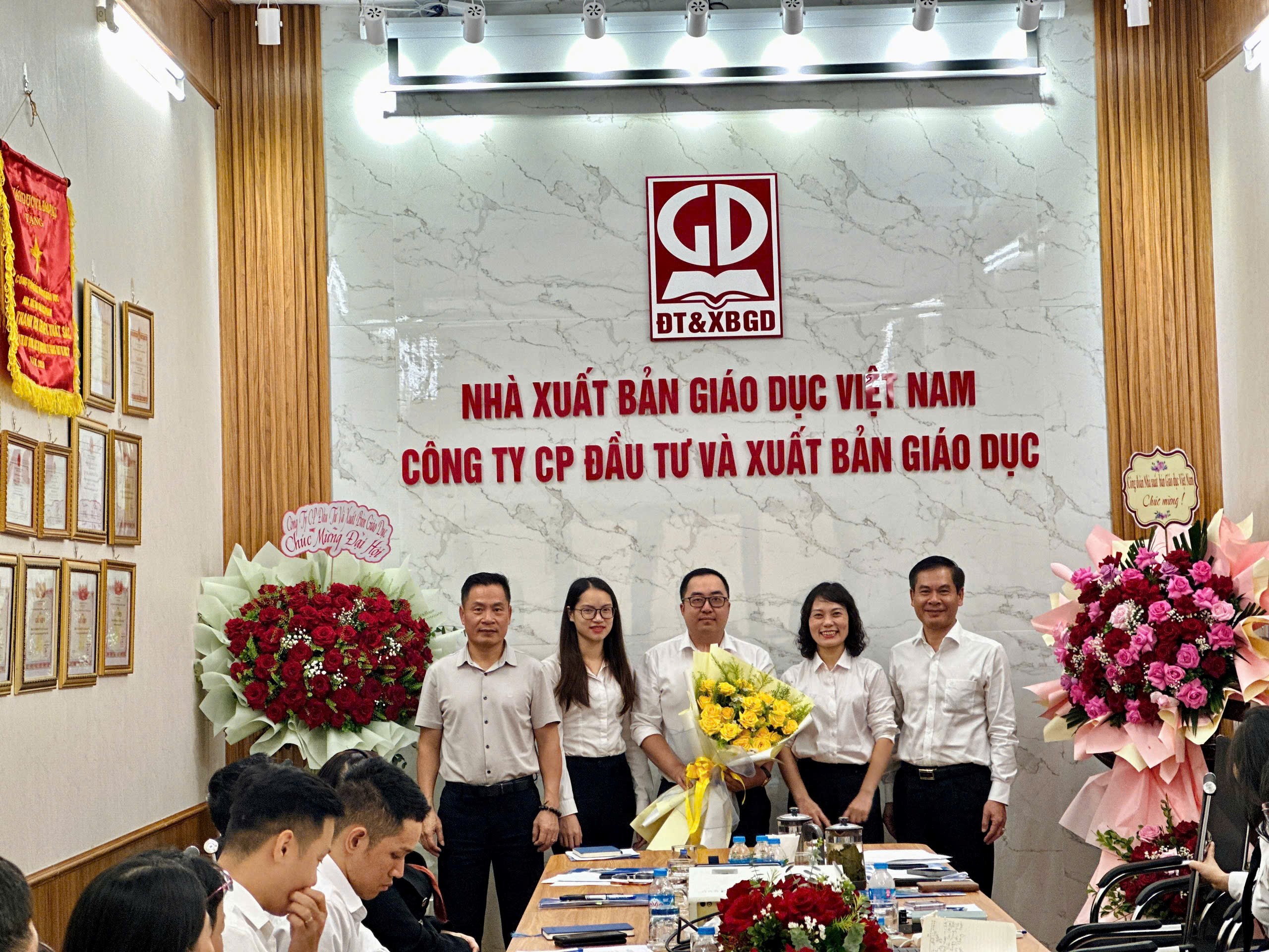 Ông Phạm Văn Thắng (thứ hai từ phải sang) – Thành viên HĐTV NXBGDVN chúc mừng Ban chấp hành Công đoàn Cơ quan Văn phòng NXBGDVN nhiệm kì 2025-2030