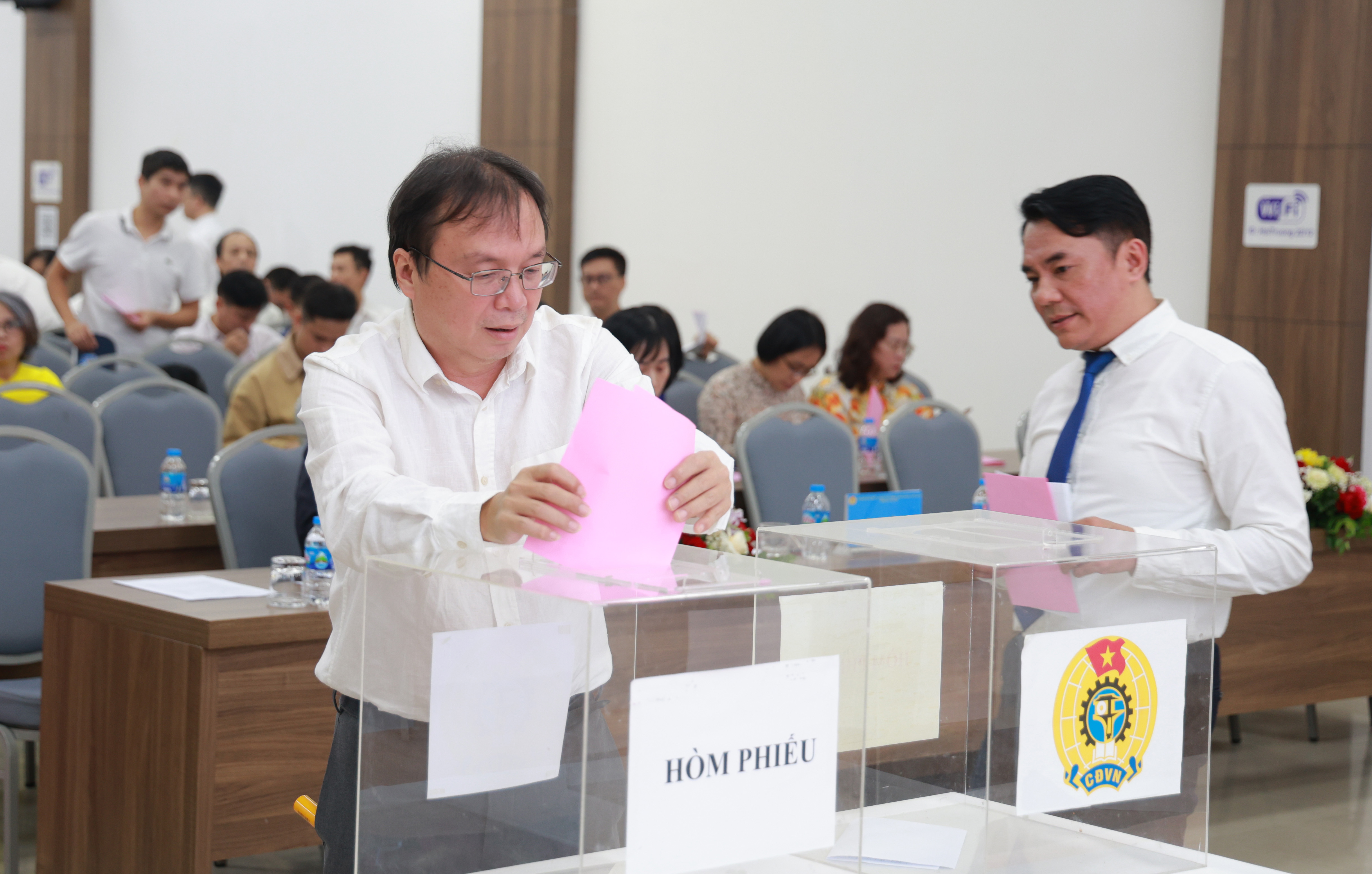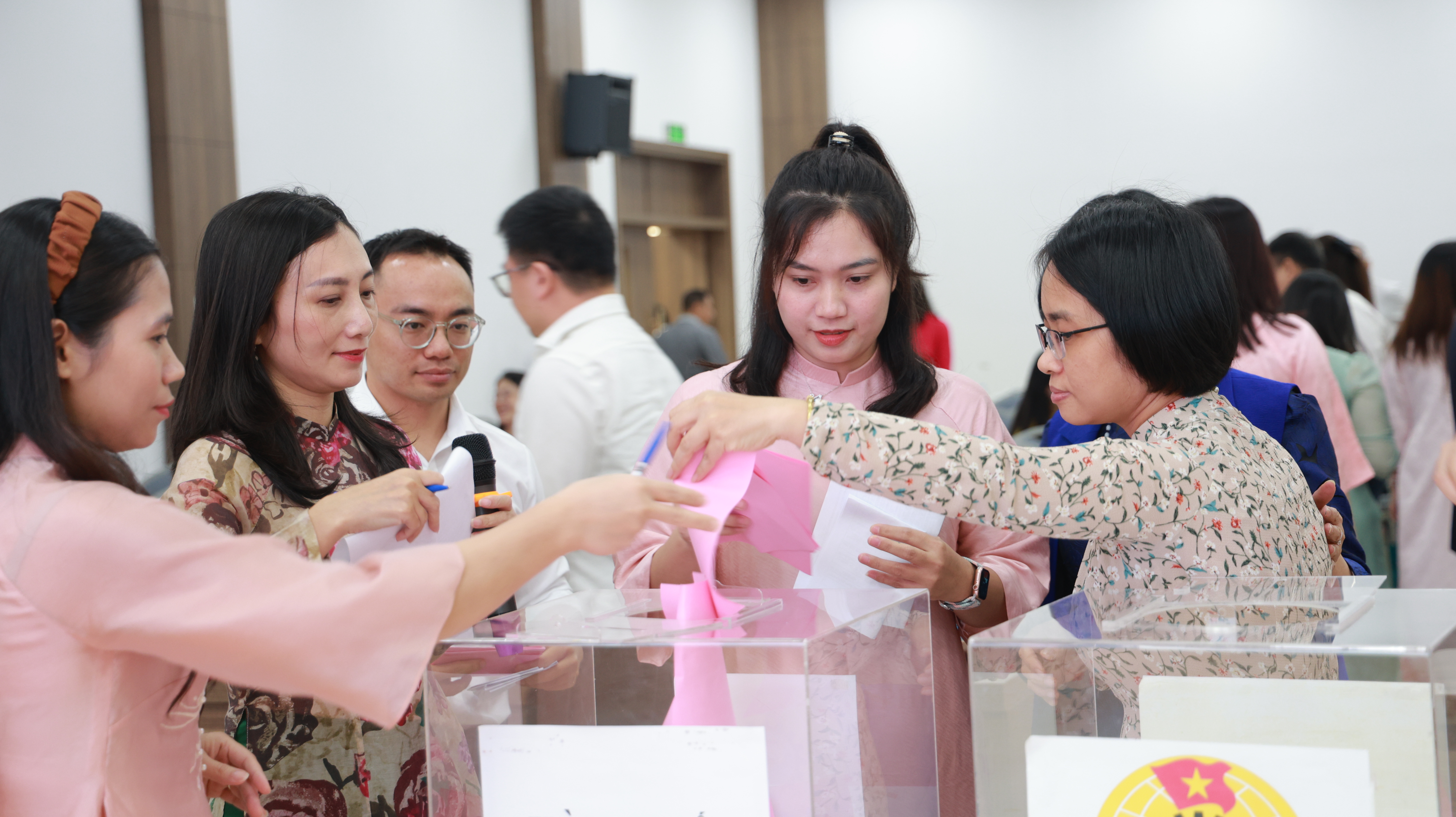 Các công đoàn viên thực hiện nghi thức bầu cử