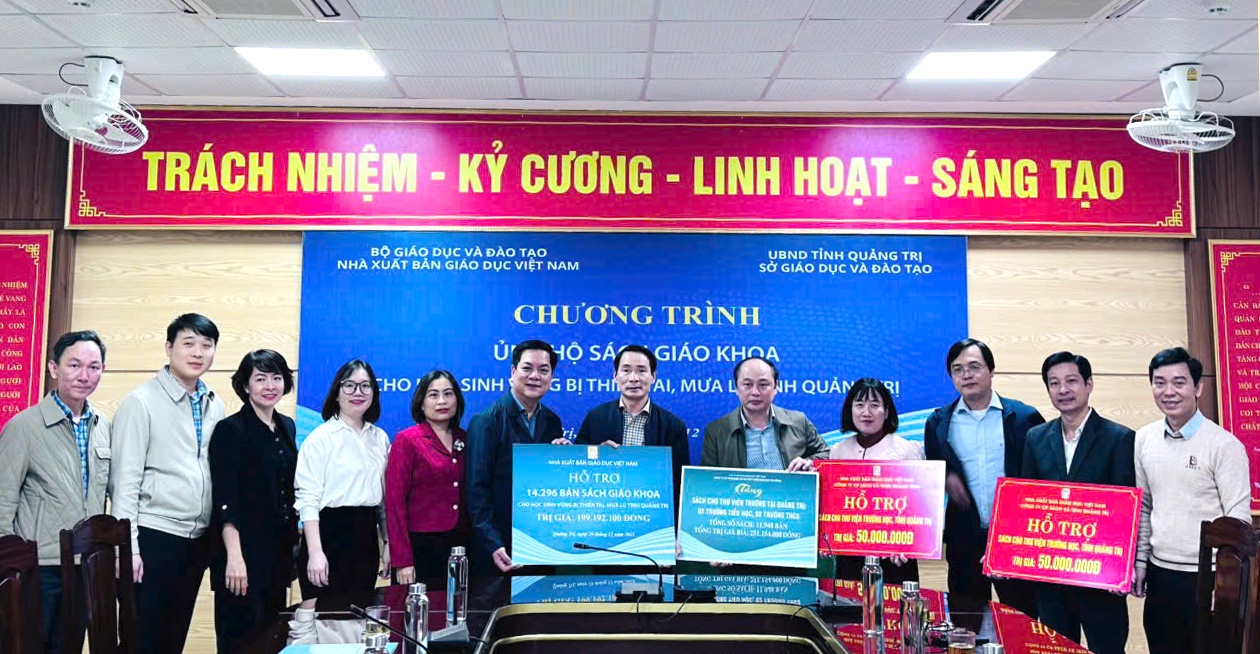 Số lượt xem: 36NXBGDVN - Ngày 26/12, tại tỉnh Quảng Trị, Nhà xuất bản Giáo dục Việt Nam (NXBGDVN) đã tổ chức chương trình trao tặng sách giáo khoa và tiền mặt cho các trường học bị ảnh hưởng nặng nề bởi mưa lũ trong năm 2025.