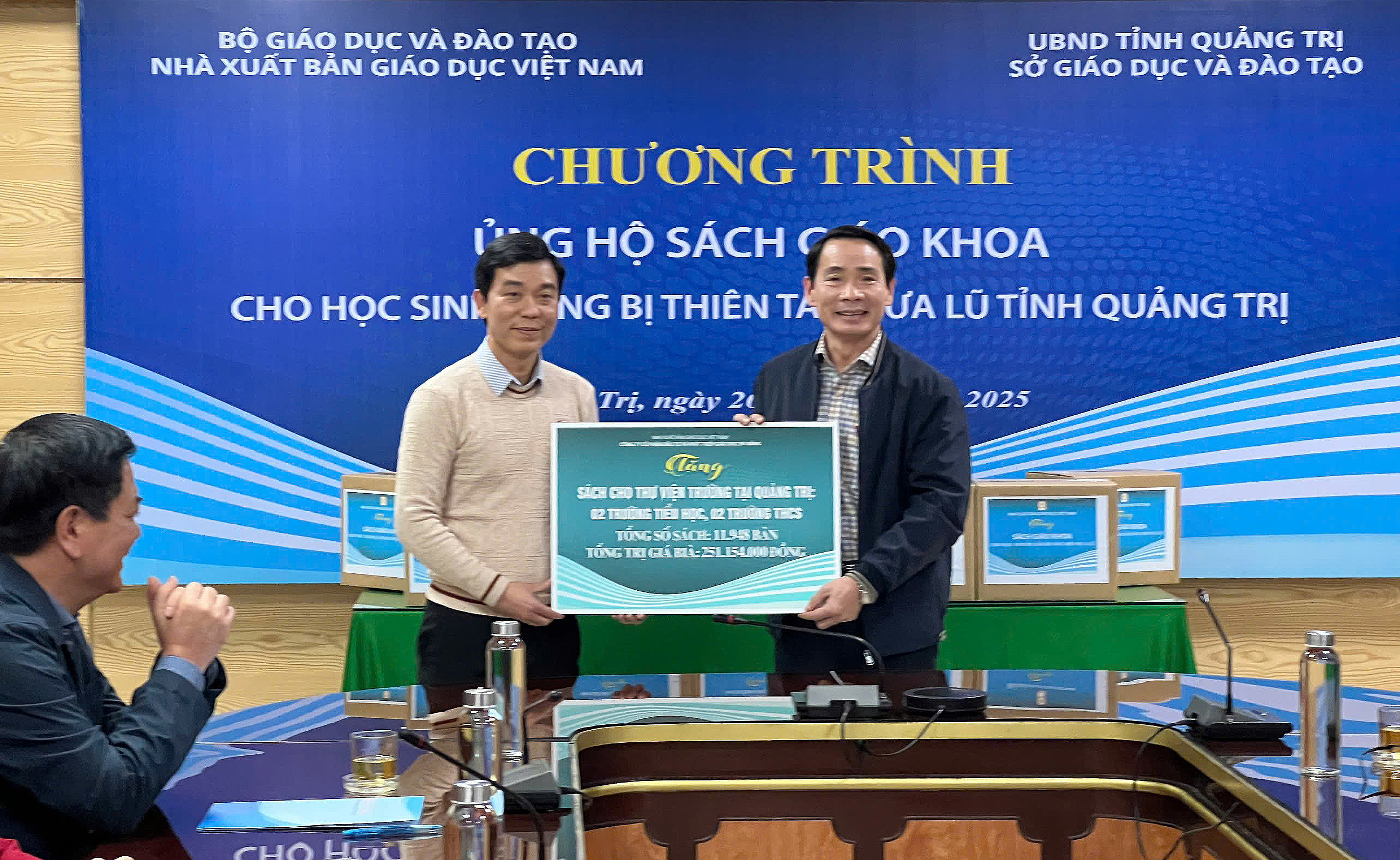 Công ty CP. Sách & TBGD Quảng Bình và Công ty CP Sách -TBTH Quảng Trị, mỗi công ty hỗ trợ 50 triệu tiền sách cho thư viện trường học tại Quảng Trị.